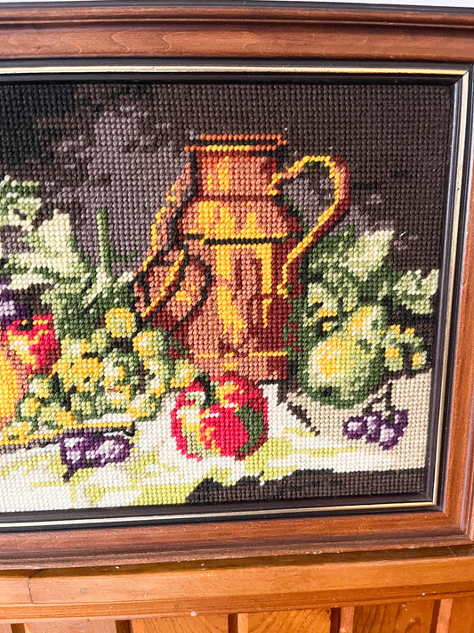 80's HANDMADE NEEDLEPOINT FRUIT FRAME